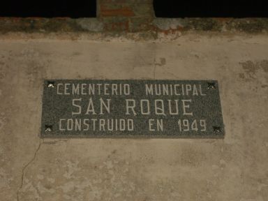En 1954 se llevó a cabo el primer enterramiento en este cementerio municipal llamado San Roque. En la siguientes fotos se ve la puerta de entrada al cementerio y el cartel con su nombre: