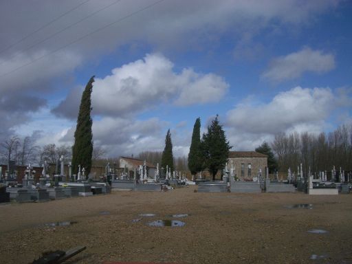El nuevo cementerio está situado en la parte Noreste del término municipal, cerca de las eras y junto a la ermita de San Roque, de la que le separa la acequia. Se accede al cementerio por un camino asfaltado de unos 100 metros que discurre paralelo al Canal del Pisuerga en su llegada al pueblo procedente de Osornillo. La siguiente foto es la vista de un atardecer de invierno desde la puerta del cementerio: